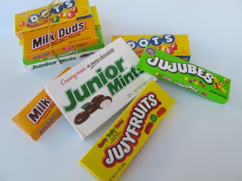 Makes a great gift. Compliment with movie tickets.5 Boxes of Assorted Movie Candy Gift Pack with Gold TieItem Brand