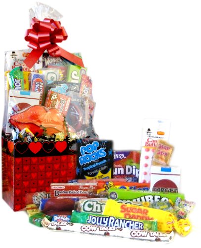 Contains Bit O Honey, Boston Baked Beans, Candy Buttons, Candy Cigarettes, Coconut Bar, Cow Tales, Fun Dip, Jolly Rancher Sticks, Jujubes, Necco Assorted Roll, Pop Rocks, Slap Sticks Caramel Pop, Sugar Daddy, Wax Lips, Chuckles, Bazooka, Chick O Stick Nuggets, Giant Now and Later, Jawbreakers, Lemonheads, Mary Janes, Walnettos and a Hand Decorated Lip Shaped Sugar Cookie.B0007OVVWKASIN