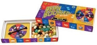 It's a box of candy and game all in one! Use the spin wheel to decide what bean you eat. Will it taste great or gross? Bamboozle the kids, family, friends, or just about anyone, with the Jelly Belly BeanBoozled® Gift Box that's a game and a candy all in one.Take the dare with the spinner wheel, then pick the jelly bean in the color the spinner lands on. It's a dare for intrepid jelly bean eaters to take their chances on tasting lookalike wild or mild flavors. If you happen to get a Booger-flavored bean instead of Juicy Pear - you've been BeanBoozled! Double and triple dare adventuresome players. Each 3.5-oz. box includes the BeanBoozled jelly beans and a colorful spinner.Jelly Belly BeanBoozled jelly beans are a collection of 20 lookalike flavors, some so crazy you can't believe it, while others are the delicious Jelly Belly beans you love. New this year is Canned Dog Food and Centipede flavors. They join a delicious Top Banana Jelly Belly bean--or is it Pencil Shavings flavor? Is the black jelly bean Licorice, or is it Skunk Spray? Perhaps the blue bean is Toothpaste flavor, or maybe it's delicious Berry Blue.Jelly Belly BeanBoozled flavor pairings are:Canned Dog Food/Chocolate Pudding, Skunk Spray/Licorice, Rotten Egg/Buttered Popcorn, Centipede/Strawberry Jam, Booger/Juicy Pear, Baby Wipes/Coconut, Barf/Peach and Moldy Cheese/Caramel Corn.Net wt. 3.5oz.B0007OVX3WASIN